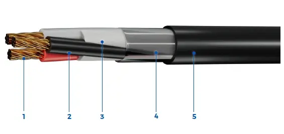 Stranded bare or tinned copper class 5 (standard) or class 2 (optional)
