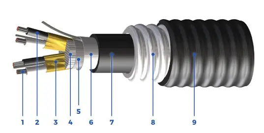 - FR PVC outer black jacket rated: 90°C to -40°C