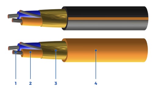 FR PVC outer orange jacket (standard for Fieldbus)rated: 90°C to -40°C