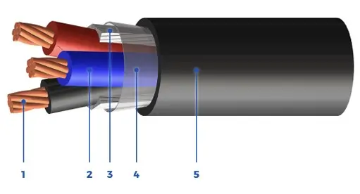 - FR PVC outer black jacket rated: 90°C to -40°C