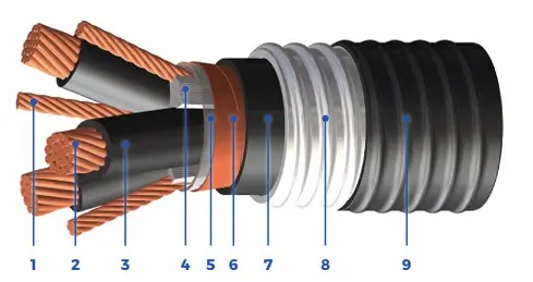 SKU: 1677 Categories: UL Type MC Metal Clad Cable, UL Type TC Tray Cable, Mineshaft Cable for Vertical InstallationUL Type Metal Clad Riser Armored Mineshaft Cables, 2000 V