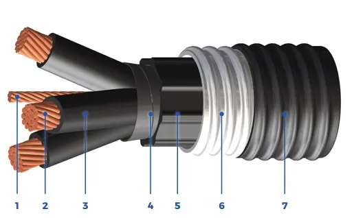 Vertical Mineshaft TECK 90 cables are designed for vertical applications to prevent cable core slippage and are suitable for use in mineshaft and for environments that require self-supporting lengths. Typically used in Mining, Utilities, Industrial and Commercial applications.